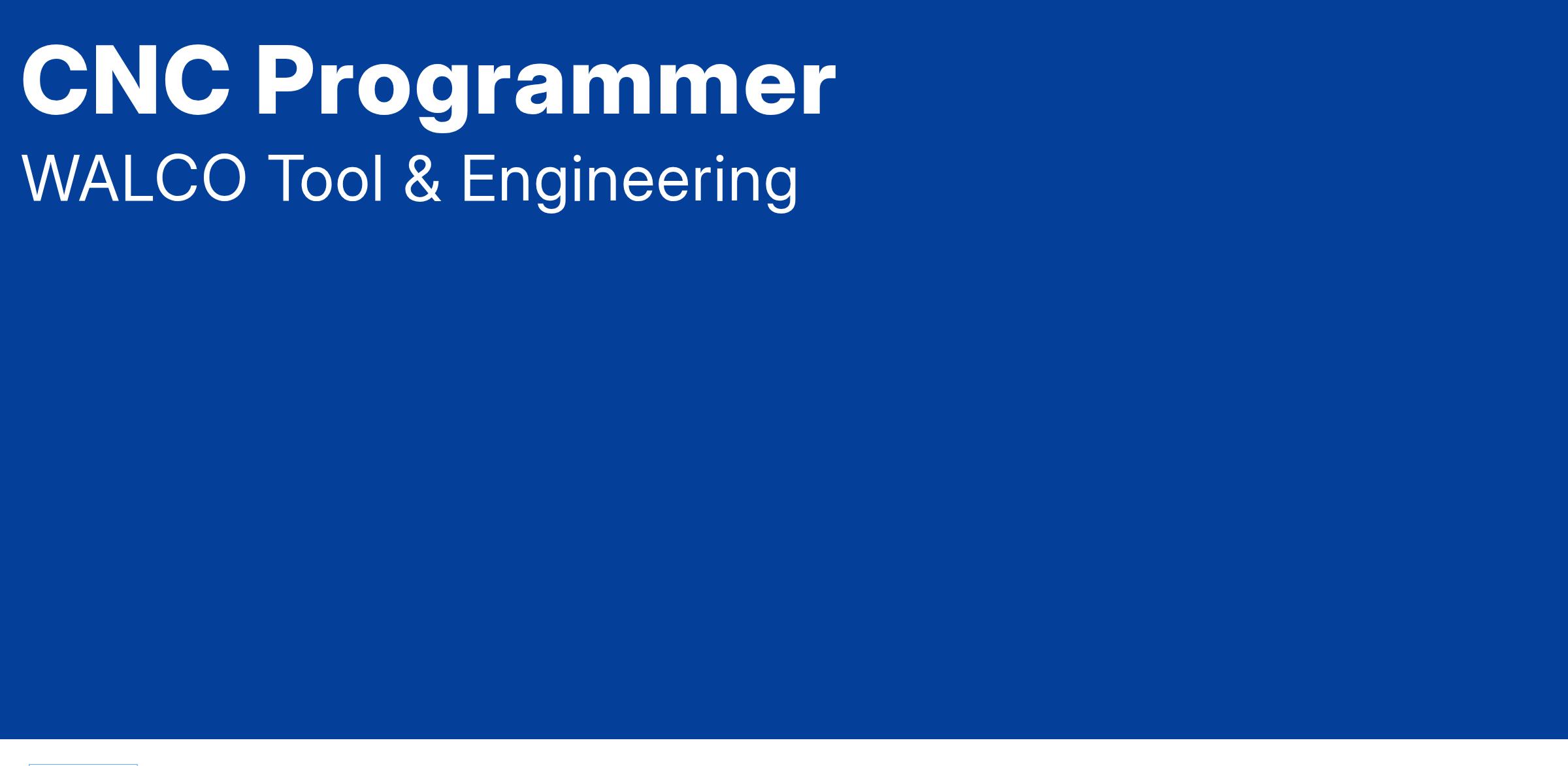 Join WALCO Tool & Engineering as a Full-Time CNC Programmer and elevate your career in a dynamic, customer-focused environment! Located in Romeoville, IL, this onsite position offers you the chance to work with cutting-edge technology and contribute to high-quality manufacturing projects. With a pay range of $23-27/hour, your expertise will be valued, and you'll have the opportunity to collaborate with a dedicated team committed to excellence.