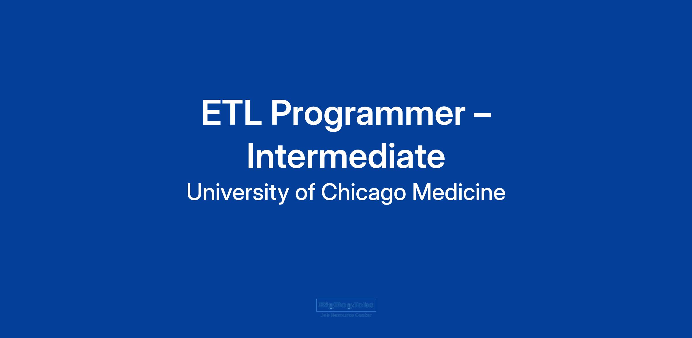 Join one of the nation’s most comprehensive academic medical centers, UChicago Medicine, as an ETL Programmer – Intermediate in our IT Enterprise Architecture department. This position will be primarily a work from home opportunity with the requirement to come onsite as needed. You will need to be based in the greater Chicagoland area.