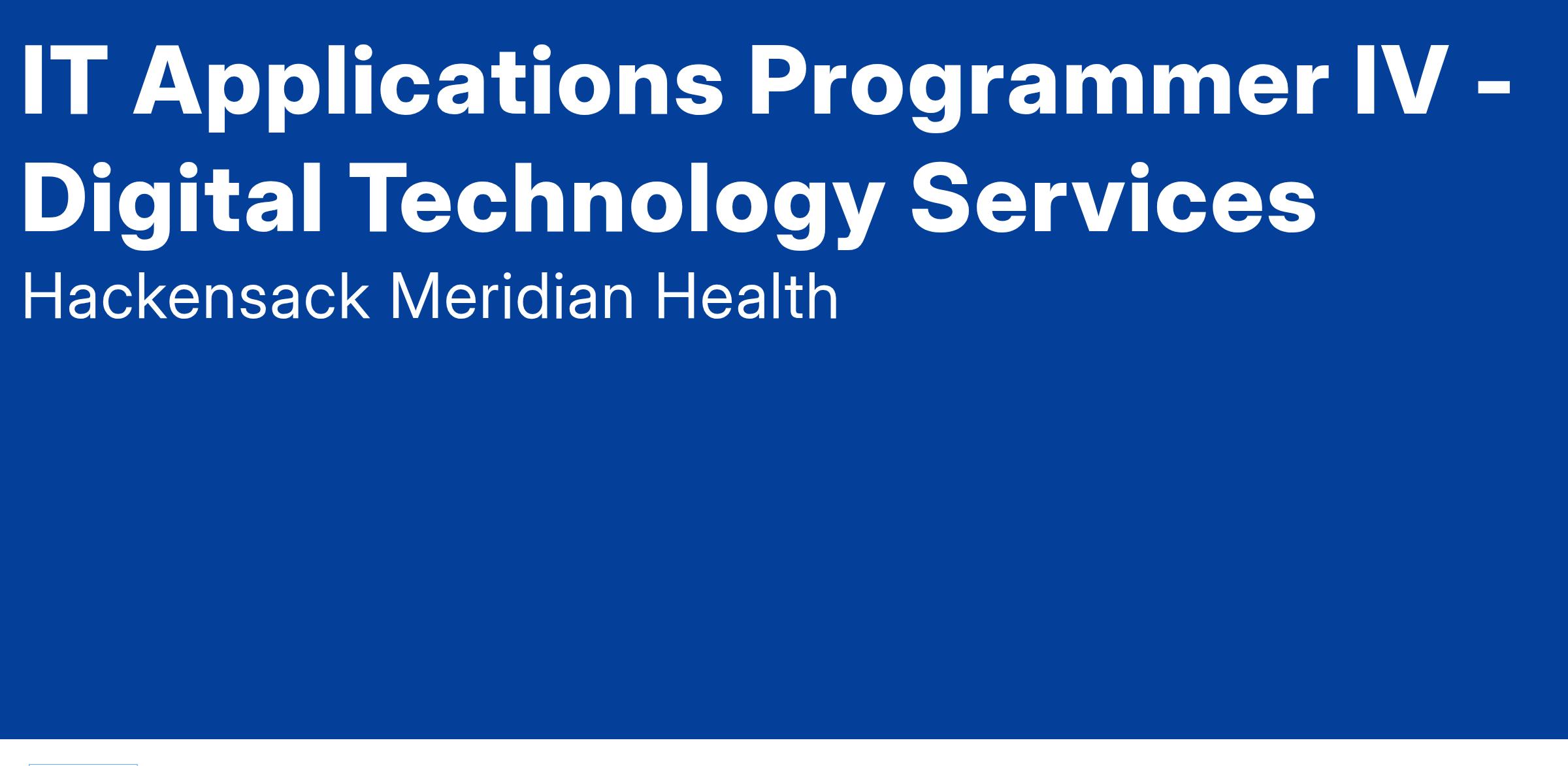 The Applications Programmer IV programs, tests, debugs, designs and maintains new applications or enhancements to existing applications across Hackensack Meridian Health (HMH). Designs and develops software applications that support internal or external business functions. Handles the most complex issues. Generally assigned multiple complex tasks and larger projects. May be asked to act as a project lead. Works independently and acts as a resource for lower level Applications Programmers.