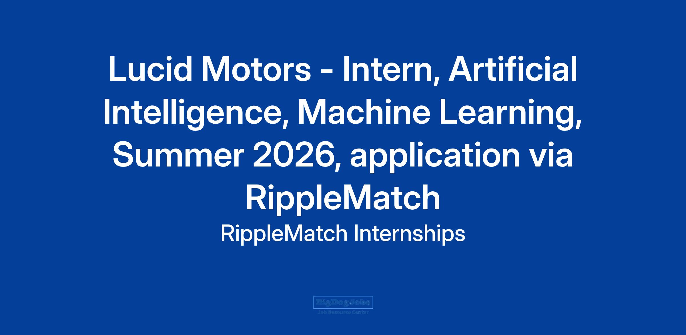 This role is with Lucid Motors. Lucid Motors uses RippleMatch to find top talent.