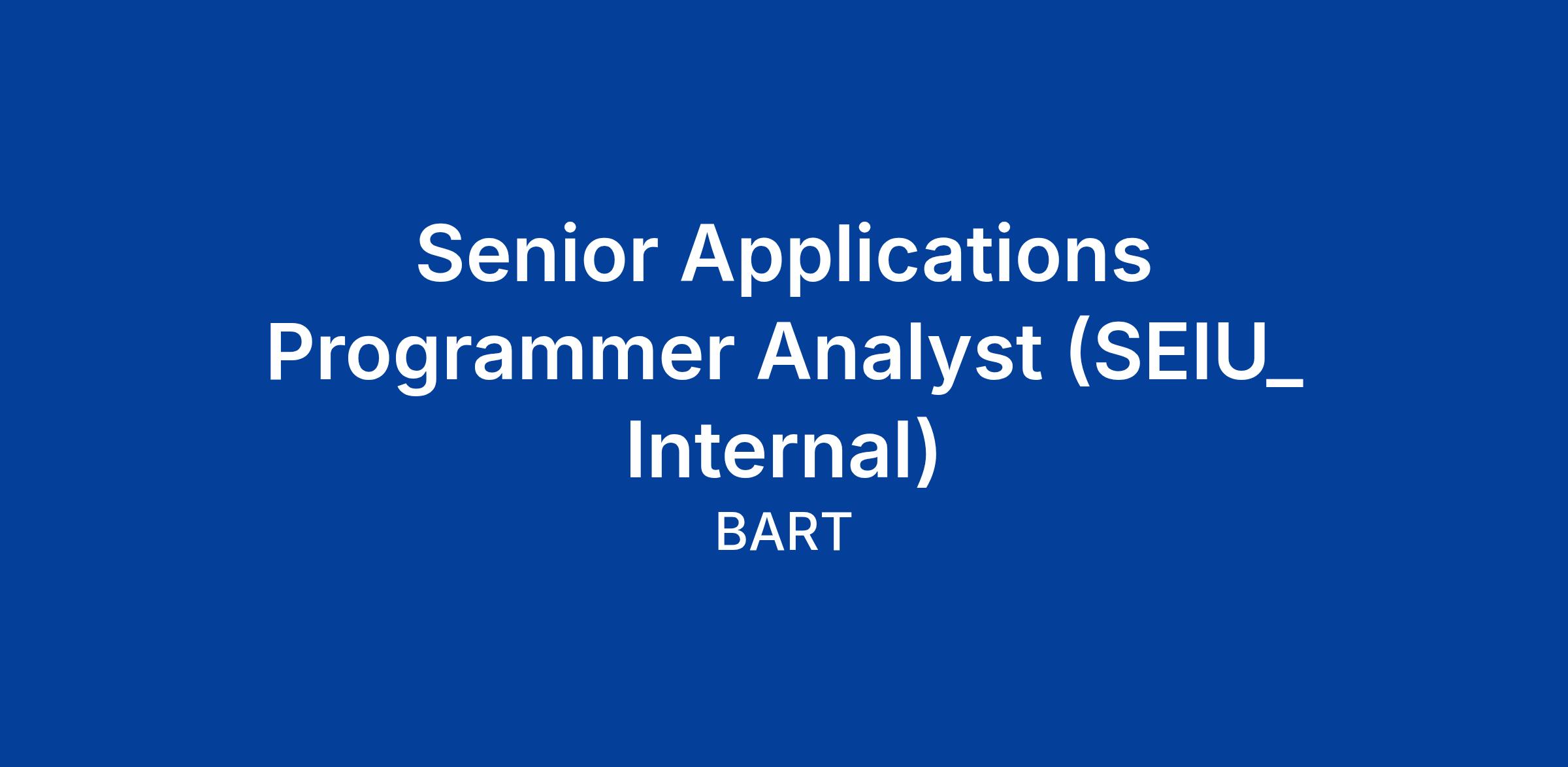 Bay Area Rapid Transit (BART) is seeking a highly motivated and skilled Senior Applications Programmer Analyst to join our dynamic and dedicated Office of the CIO. In this exciting role, you will provide enterprise application support across key platforms, including FusionLive Document Management System, DocuSign, Microsoft applications, and ColdFusion—helping BART continue to deliver world-class transit service to the Bay Area.
