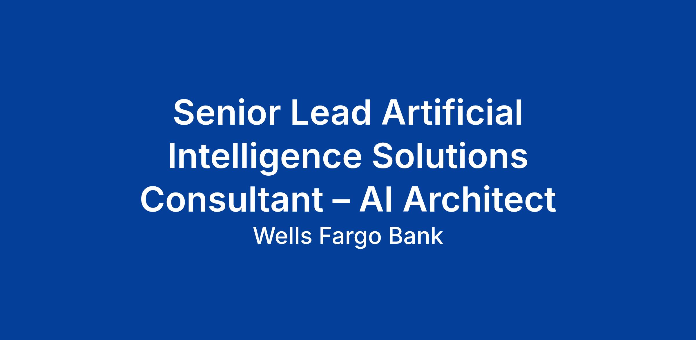 Wells Fargo is seeking a Senior Lead Artificial Intelligence Solutions Consultant Architect to lead the architecture, design and execution of enterprise AI capabilities, with a focus on Generative and Agentic-AI technologies. This role will work and partner with cross-functional teams to build scalable, intelligent solutions that transform user experiences and operational efficiency across the enterprise.
