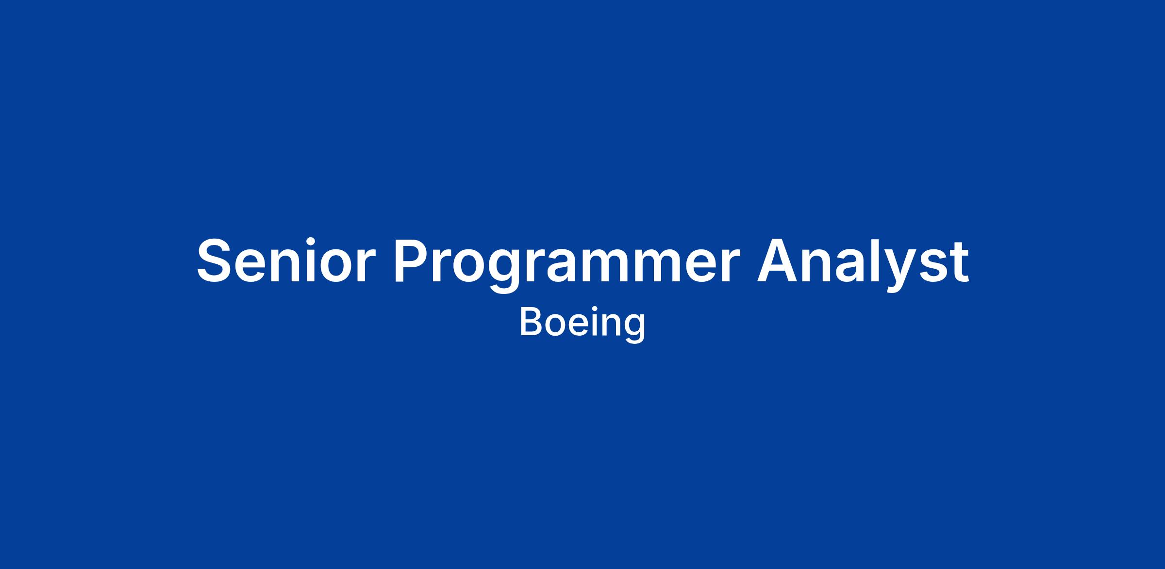 The Boeing CompanyThe Boeing Company is currently seeking a Senior Programmer Analyst to join the team in Renton, WA; Everett, WA; Seattle, WA; Huntsville, AL; Mesa, AZ; El Segundo, CA; Seal Beach, CA; Englewood, CO; Miami, FL; Chicago, IL; Berkeley, MO; Oklahoma City, OK; Ridley Park, PA; North Charleston, SC; Dallas, TX; Plano, TX; or Arlington, VA.